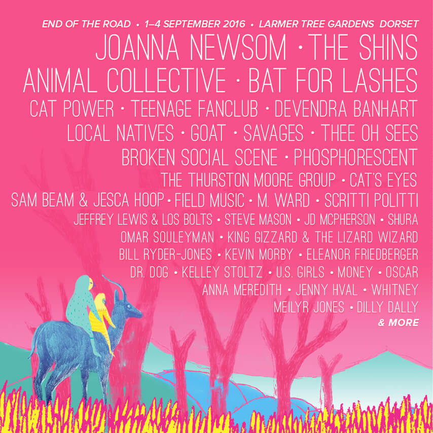 Playing her only UK festival since the release of Divers, one of the albums of 2015, the dazzlingly talented Joanna Newsom will headline End of The Road with her harp-led sonic odyssey. Joining Joanna as headliner and making their first ever appearance at End of The Road will be the Technicolor, genre-hopping, experimental vocal harmonizing one offs Animal Collective. We are also delighted to welcome Bat for Lashes to End of The Road for the first time, who has long been on the festival wish list with her unique brand of otherworldly pop.