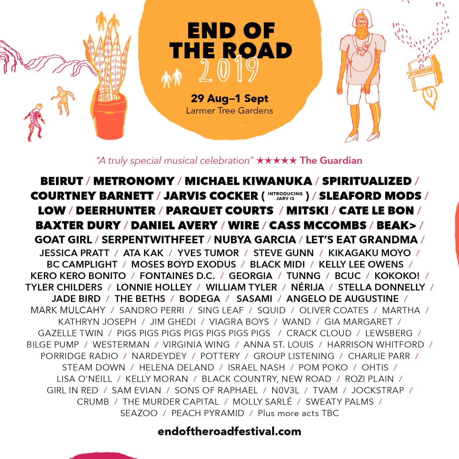 The winners of this year’s Play End Of The Road competition have also been revealed; we’re talking three incredible new bands that were hand-picked from a list of thousands of hopeful applicants and have won a spot on our 2019 bill, with one bagging a filmed session on site with The Line Of Best Fit. Noisey Glaswegian four-piece Sweaty Palms, Welsh wonky pop wizards Seazoo and all the way from Canada, surf-inflected singer-songwriter Peach Pyramid, will join us at this year’s festival.
